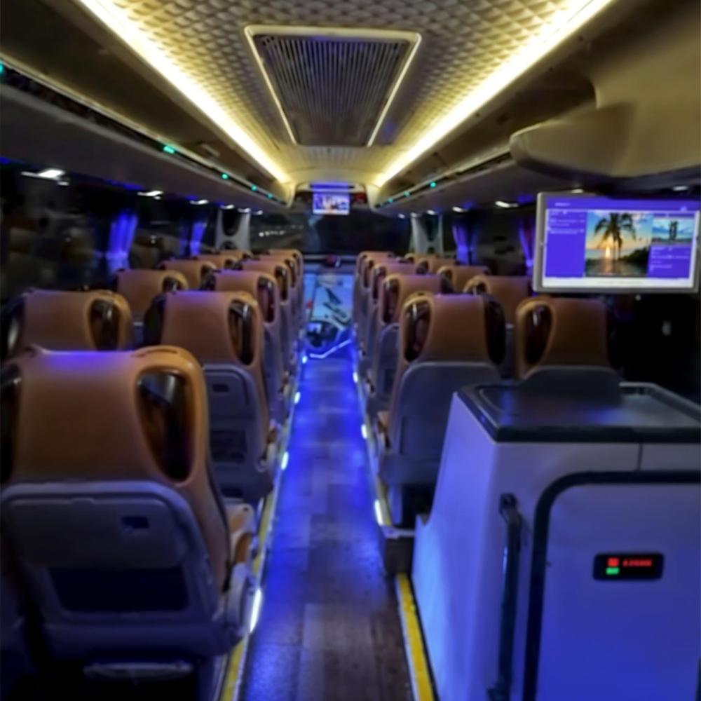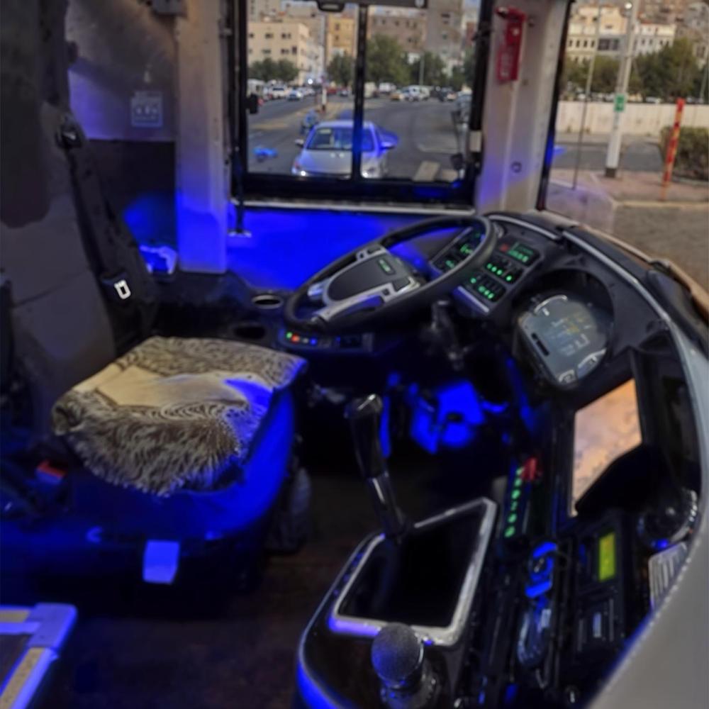 تكييف هوائي شامل: نظام تكييف مركزي متطور يضمن توزيعًا مثاليًا للهواء البارد في جميع أنحاء الباص، لمواجهة أجواء المملكة الحارة وضمان رحلة منعشة.